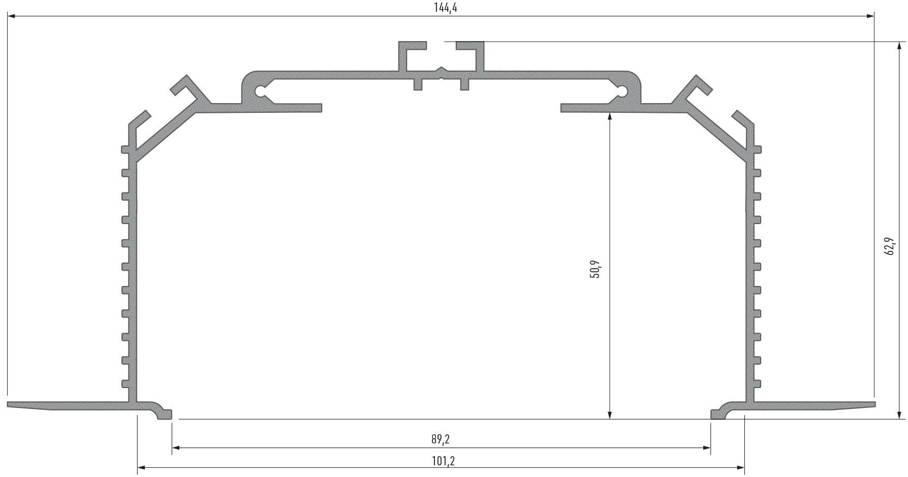 1. Кінцевий результат монтажу системи профілю LARGO з розсіювачем SUPER WIDE і монтажним профілем LARGO M3 разом з монтажними пружинами.