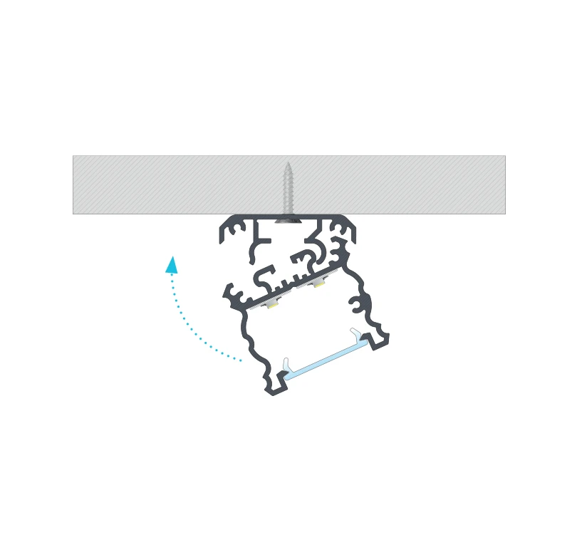 1. Принцип монтажу профілю TALIA з розсіювачем DOUBLE з використанням саморізу і монтажного профілю TALIA М1.