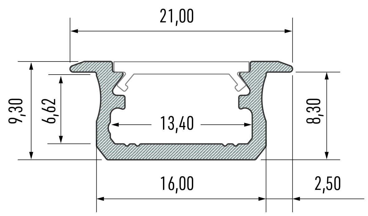 1. Інструкція монтажу вбудованого профілю В з розсіювачем BASIC.