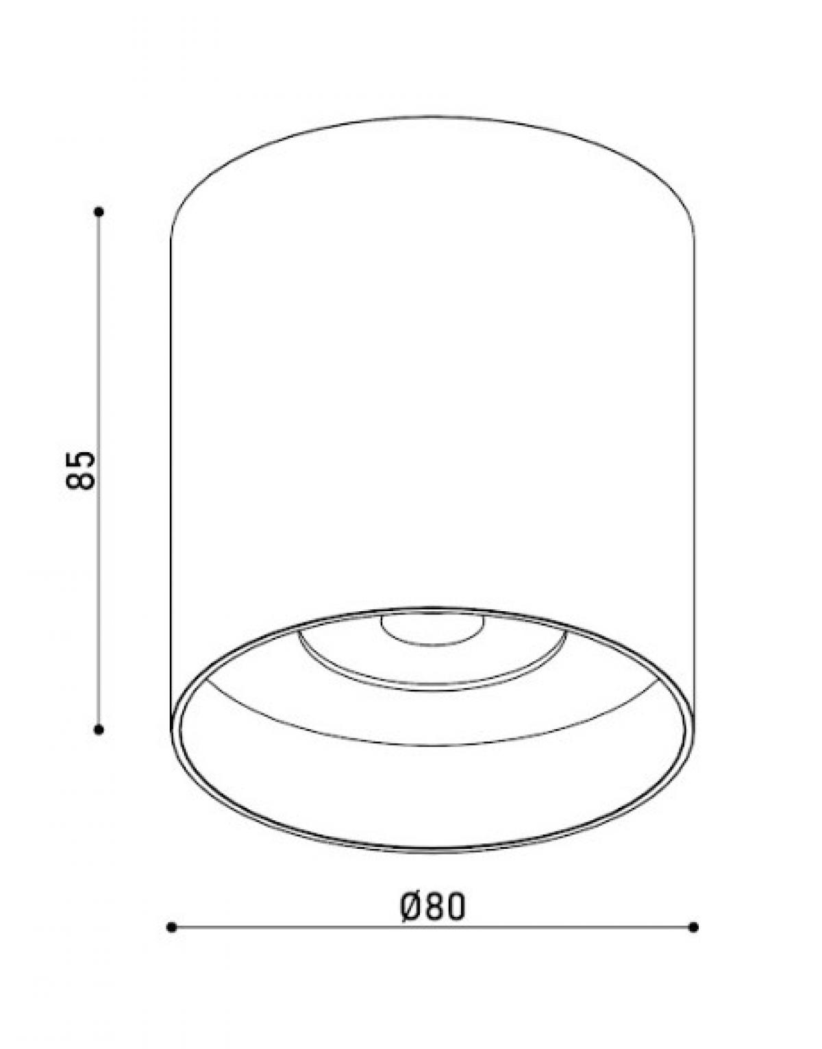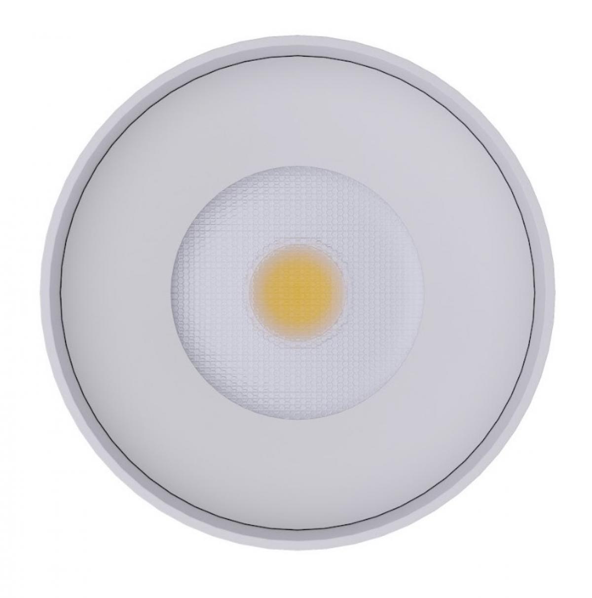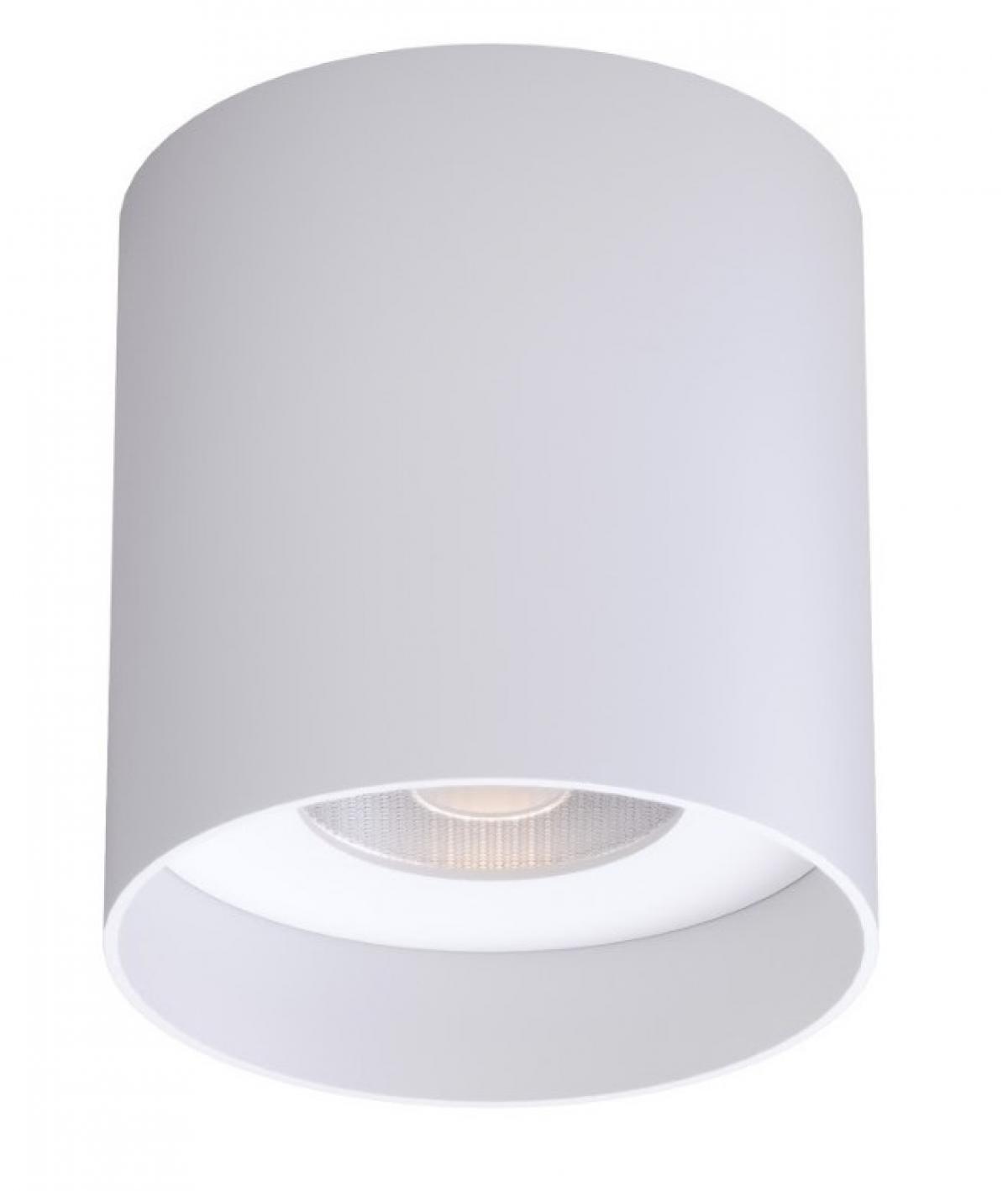 Цей накладний світильник має стильну циліндричну форму та виготовлений з білого алюмінію. Він оснащений ефективним Led-модулем на 12 Вт, який забезпечує яскравість 960 Лм. Колір світіння - 3000 К, з кутом розсіювання 38°. Розмір світильника - висота 85 мм і діаметр 80 мм.