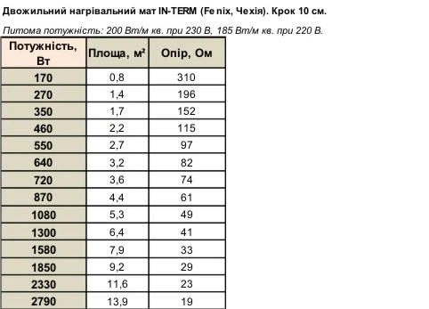двожильного мату становить 200 Вт/м². Крок укладки кабелю прикріпленого до