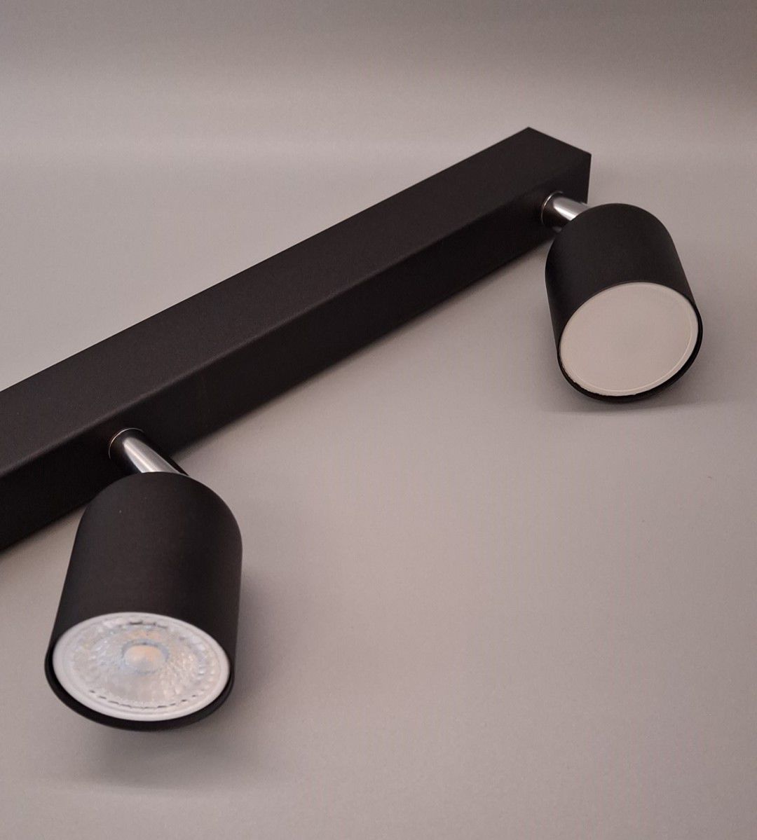 Цей накладний поворотний спот має циліндричну форму та виготовлений з металу з чорним покриттям. З чотирма джерелами світла на цоколь GU10, ця модель забезпечує широке та рівномірне освітлення. Висота світильника становить 160 мм, а ширина — 710 мм, що робить його відмінним вибором для освітлення великих просторів.