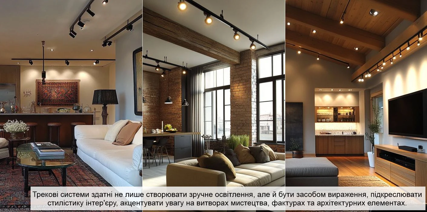 Таким чином, трекова система є дуже гнучким рішенням, яке можна адаптувати під будь-який стиль інтер'єру, зберігаючи не тільки функціональність, але й естетику.